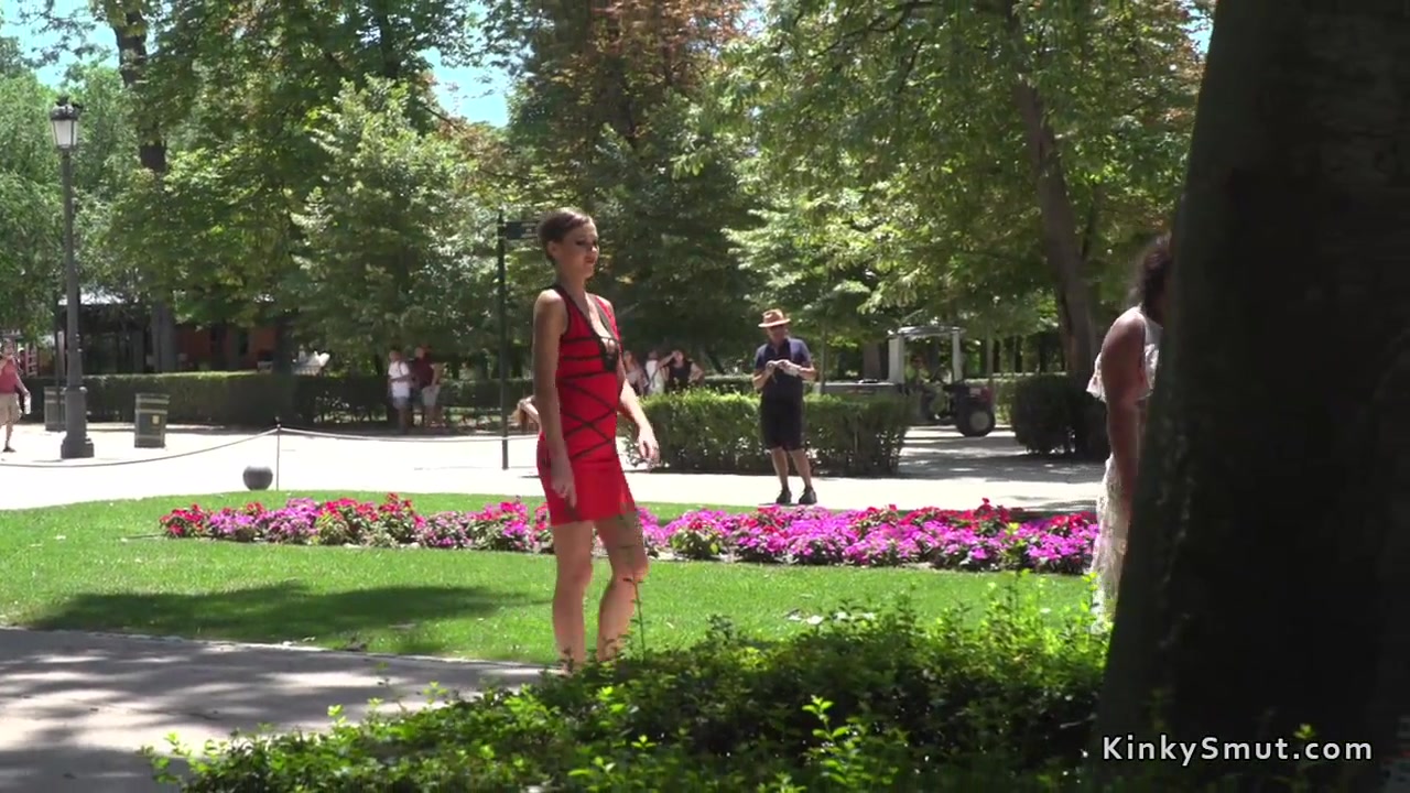 Ebony slave fucked and pissed in public