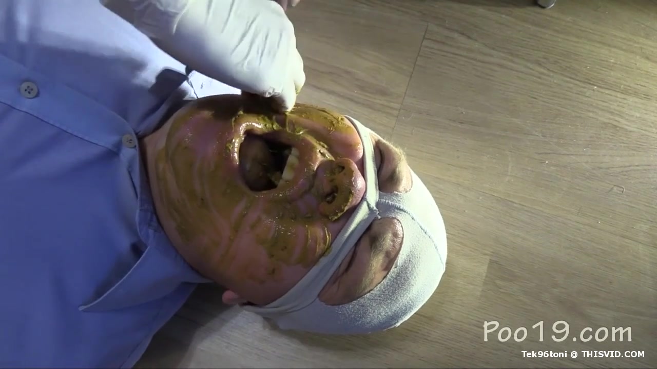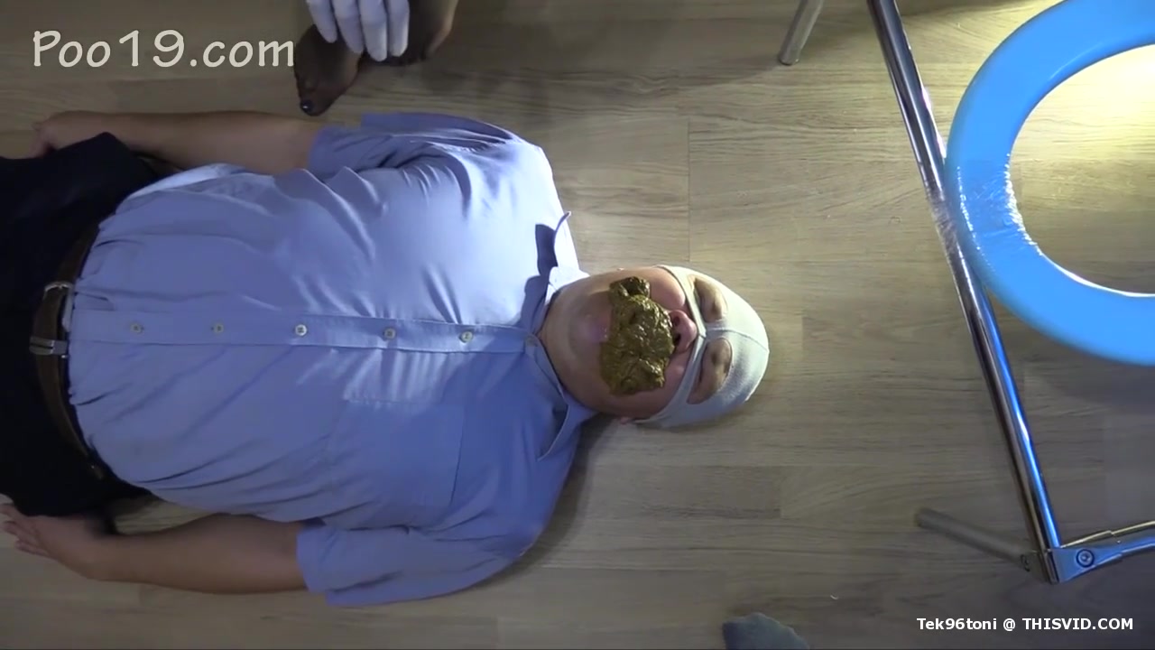 Russian girl sits half naked on a homemade toilet and she's pooping a lot on older boyfriend's face.