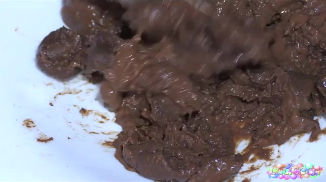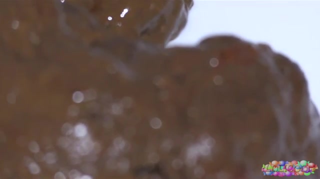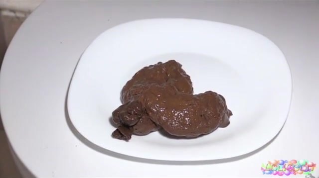 Amateur girl sits naked on her knees and she shits a lot on bathroom floor. She records that fresh poop in close up.