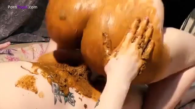 Redhead girl smears shit on her big ass and she's riding a cock hard and fast.