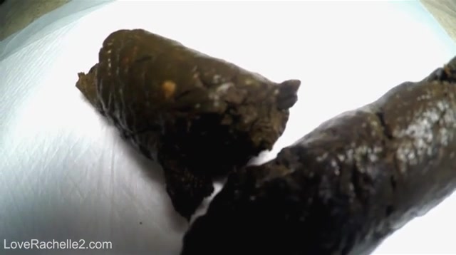 Beautiful brunette sits half naked on her knees and she's pooping a lot on a white plate.