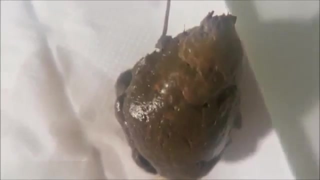 Maked brunette eats her own shit from a white plate. She loves doing that.