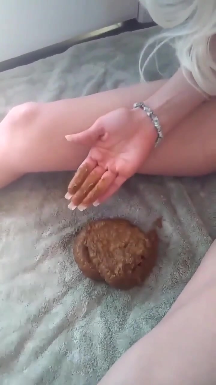 Beautiful blonde babe decides to play with her own shit. She smears poop on her perfect body.