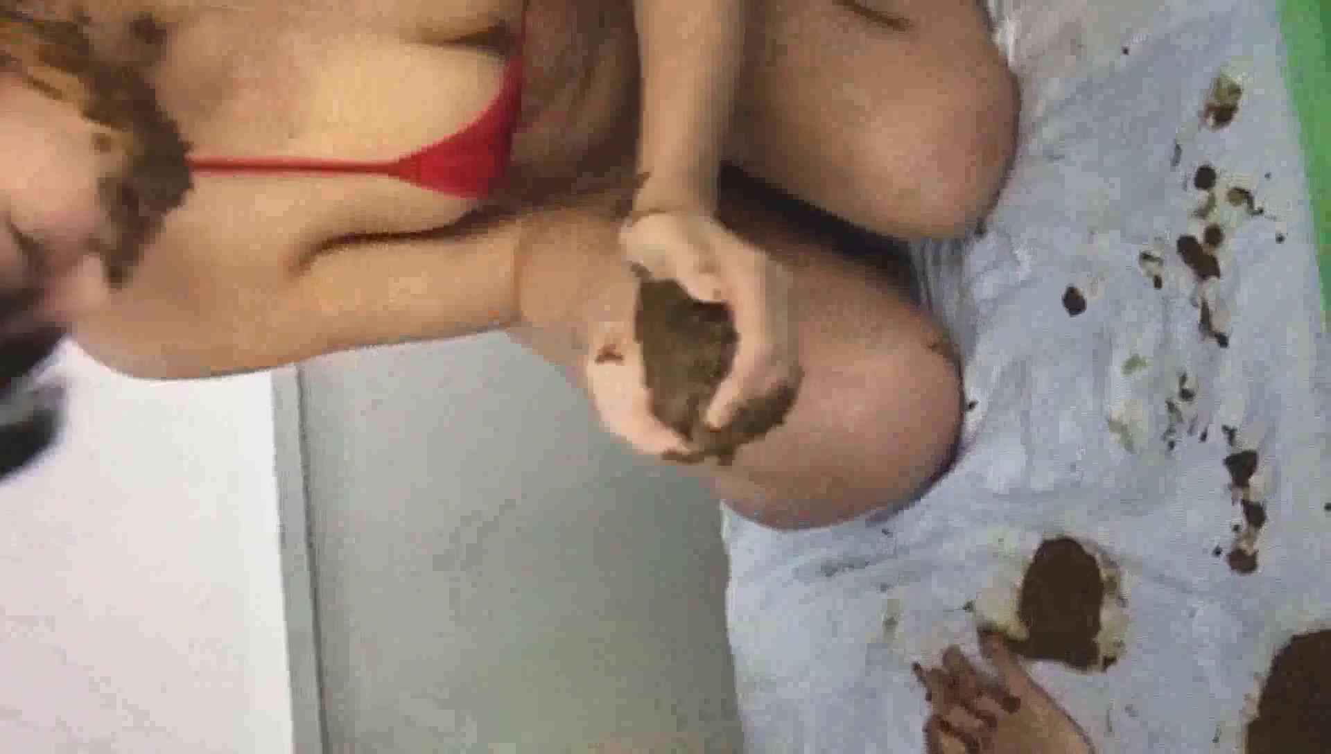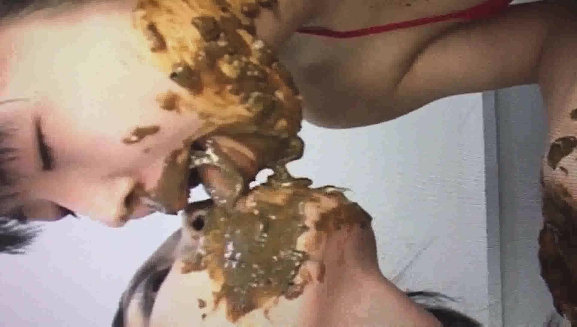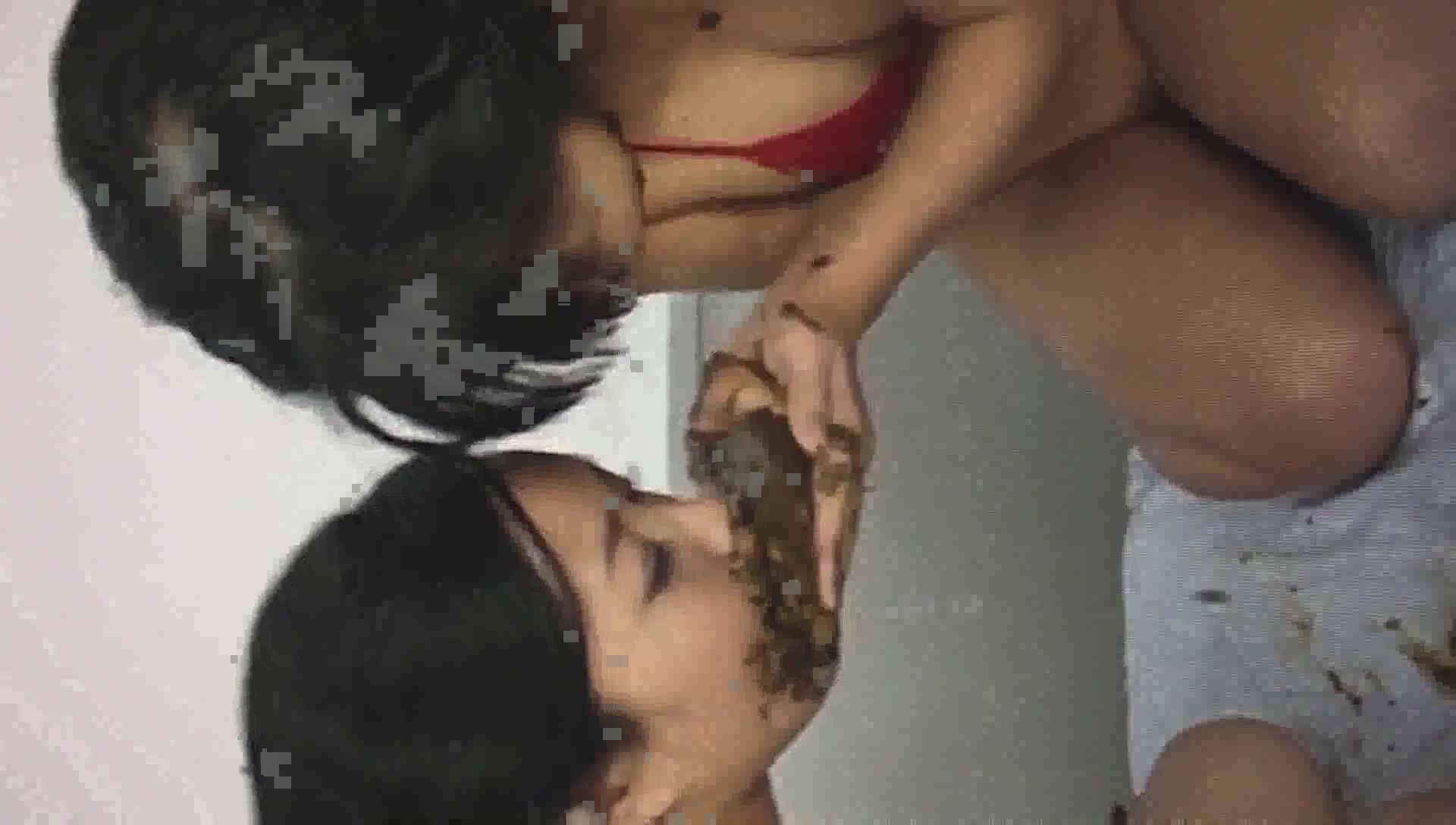 Japanese girls eat fresh shit from a glass bowl. They smear poop on their naked bodies.