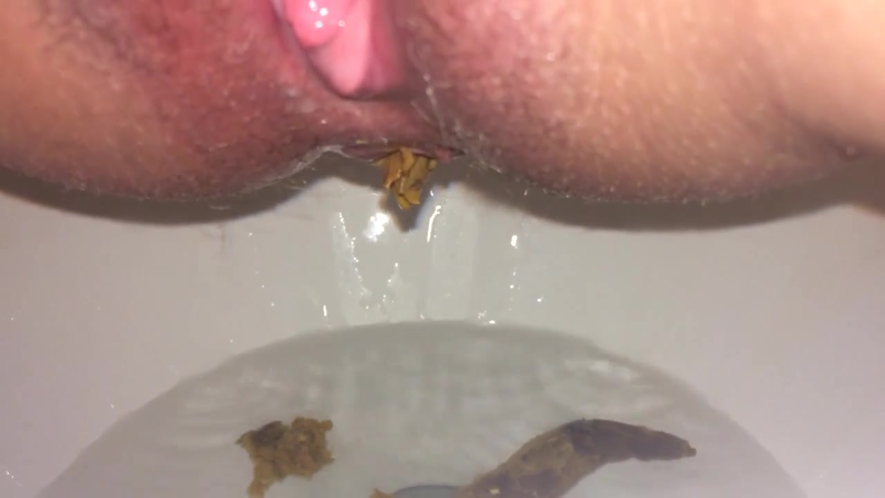 She records her pussy and ass in close up as she's pooping a lot in toilet.