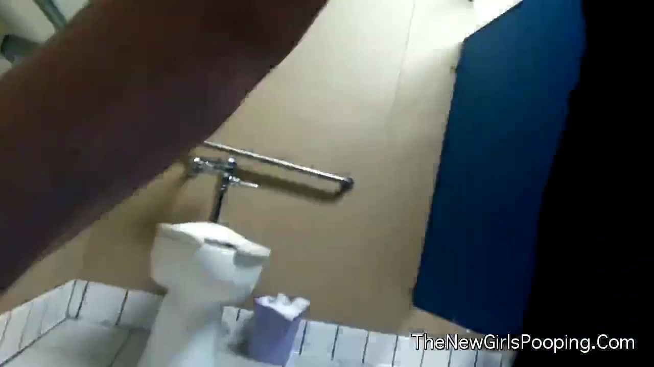 Beautiful blonde teen spreads her butt cheeks wide opened as she's pooping big ones in toilet.