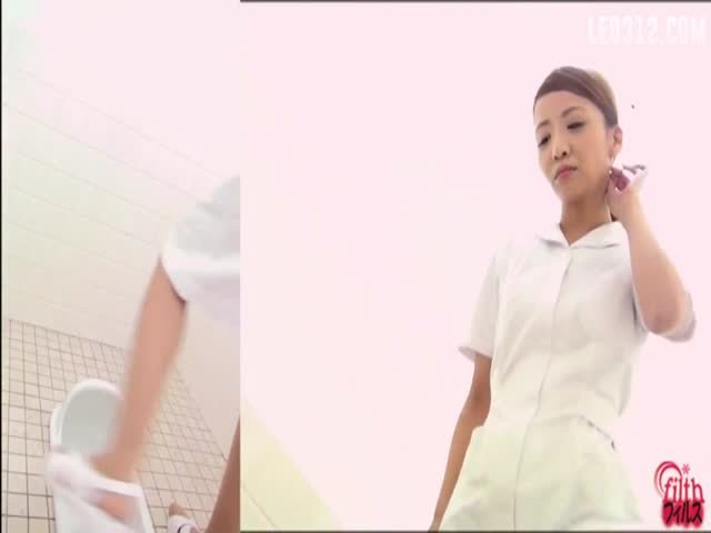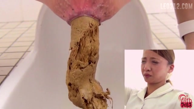Brown haired teen spreads her legs wide opened and she shtis a lot in a public bathroom.