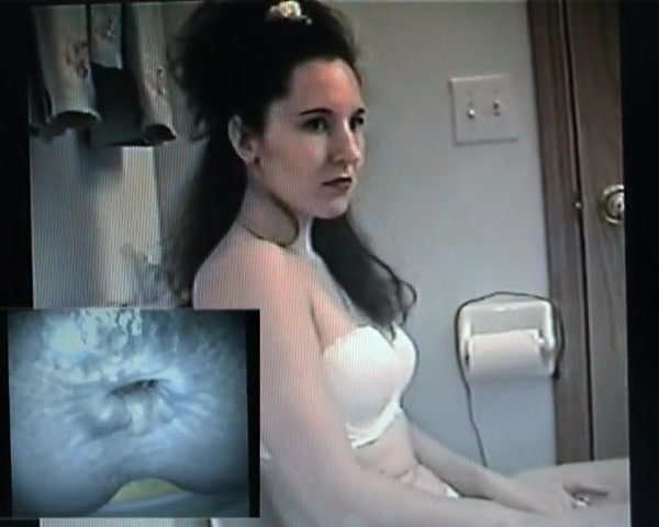 Dark haired babe pulled white thongs aside so she can easily poop over toilet.