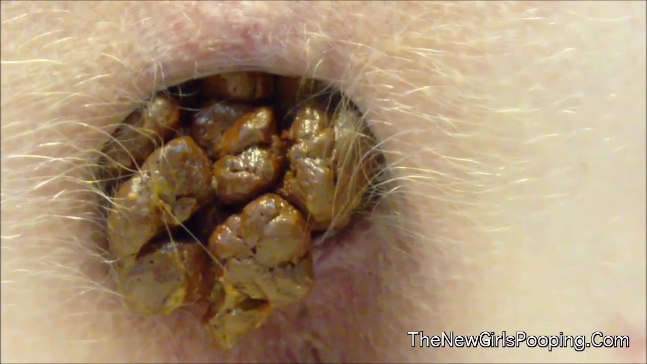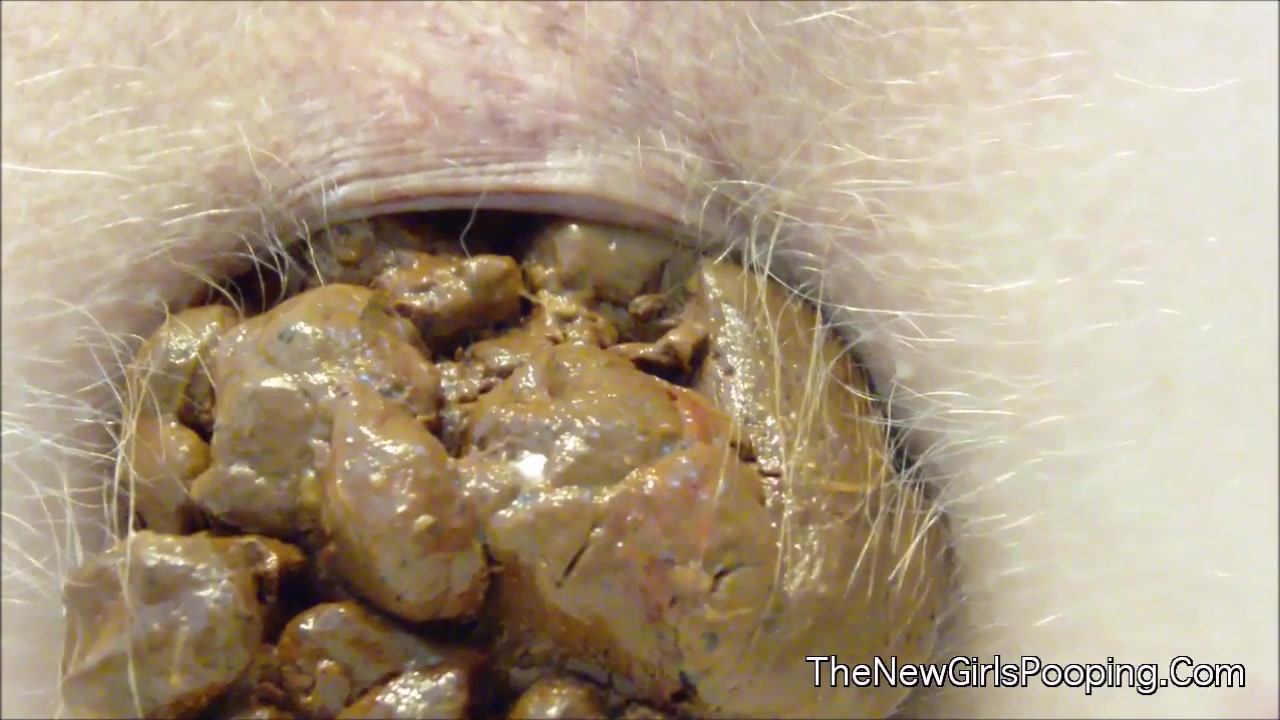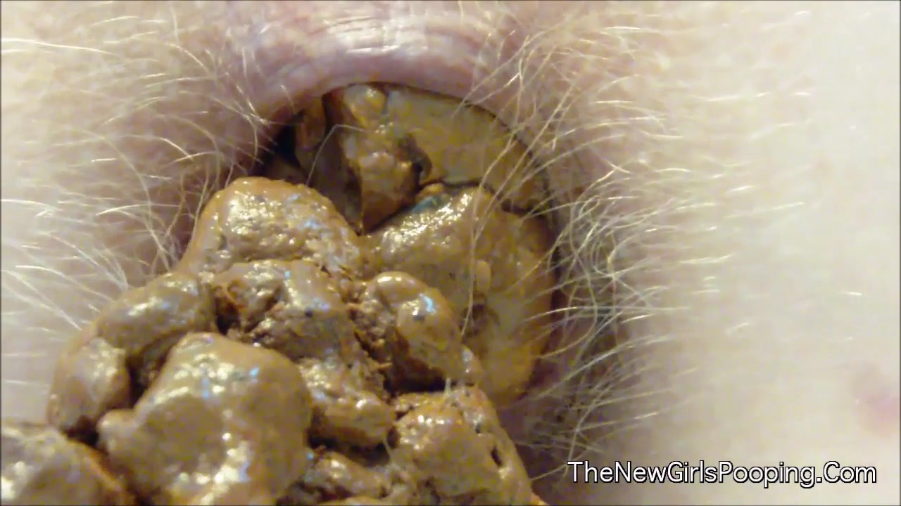She records her hairy ass in close up while pushing a big turd from her tight ass.