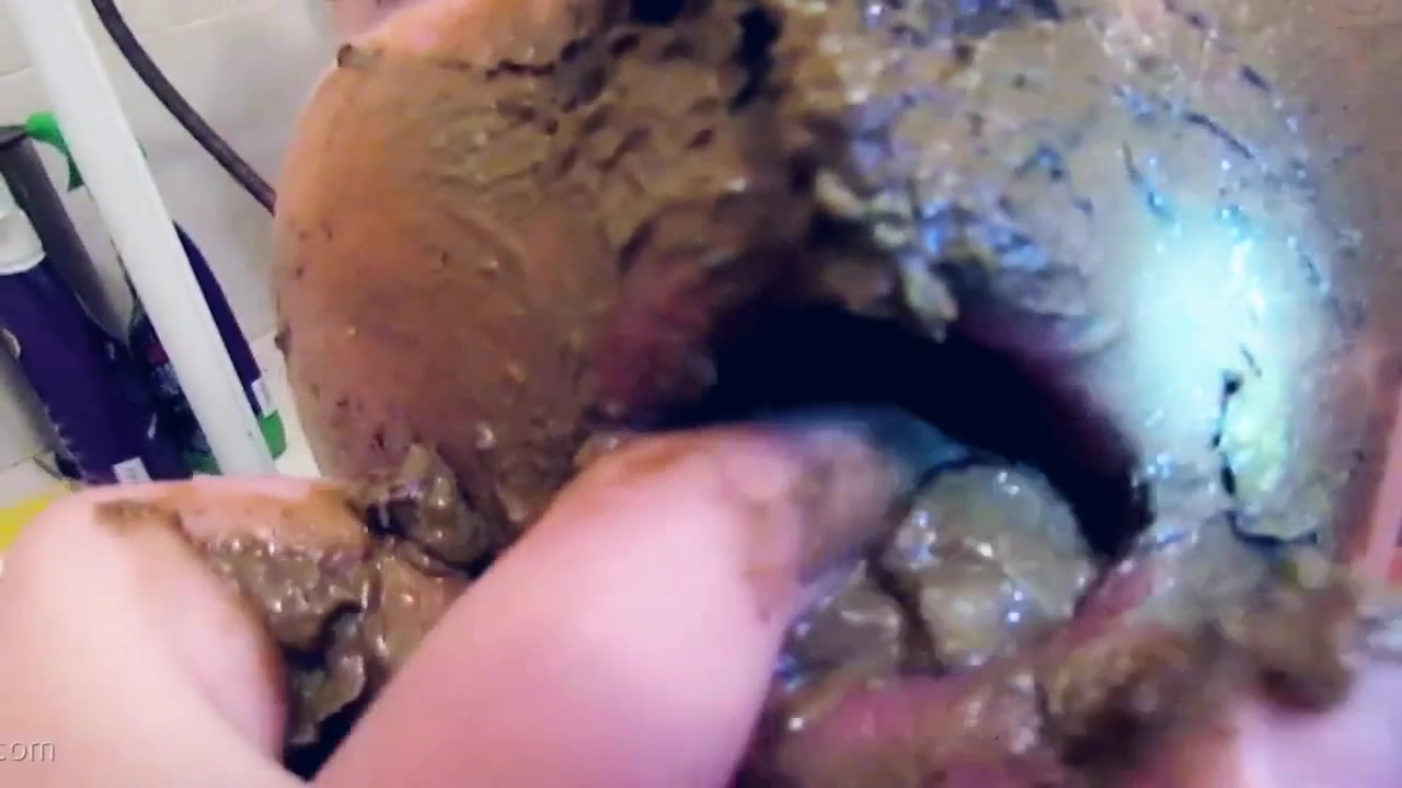 He decides to smear brown shit on girlfriend's face before he starts face fucking her hard.