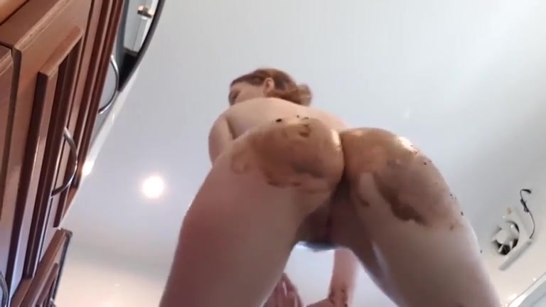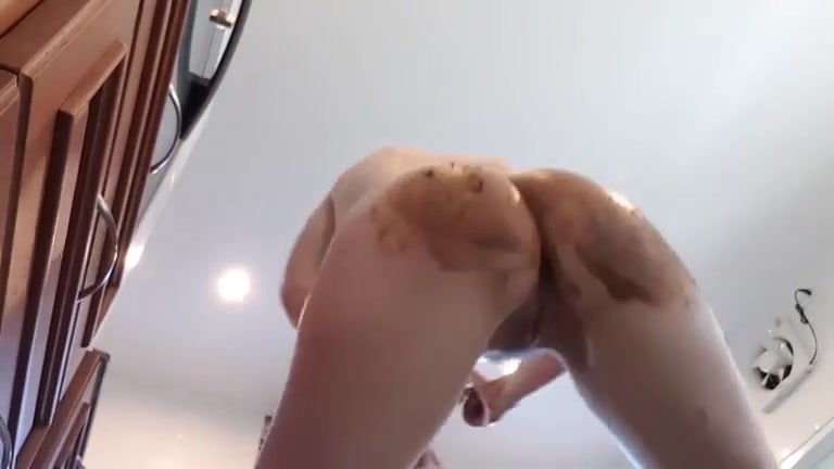 Beautiful babe smears brown shit on her perfect ass. She's shaking her ass in front of the camera.