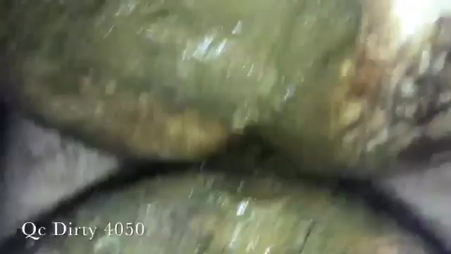 Chubby babe covered her entire body with green shit. She gets fucked hard from behind.