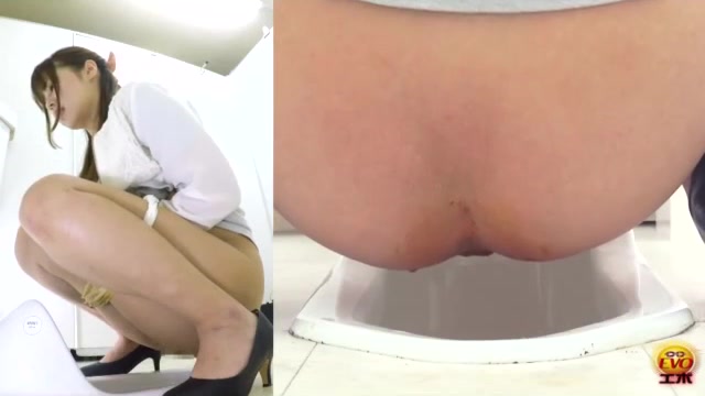 Using a hidden camera to spy on a japanese girl that's pooping a lot in a public bathroom.