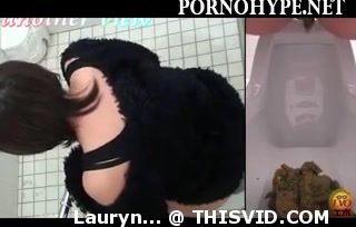 Japanese teen was caught pooping in a public bathroom. She wipes her dirty ass with toilet paper.