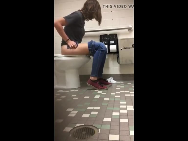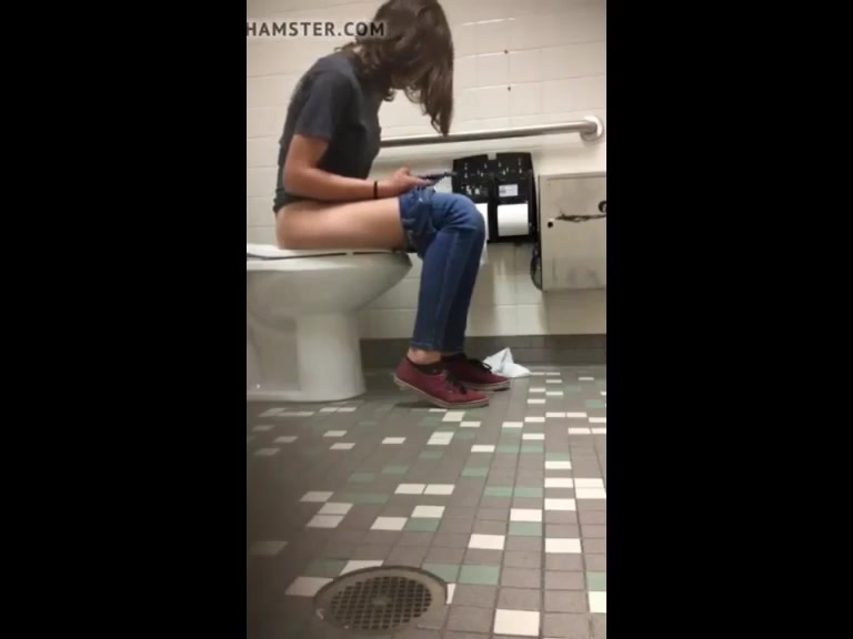 Using a hidden camera to spy on a sweet brunette college babe that's pooping.