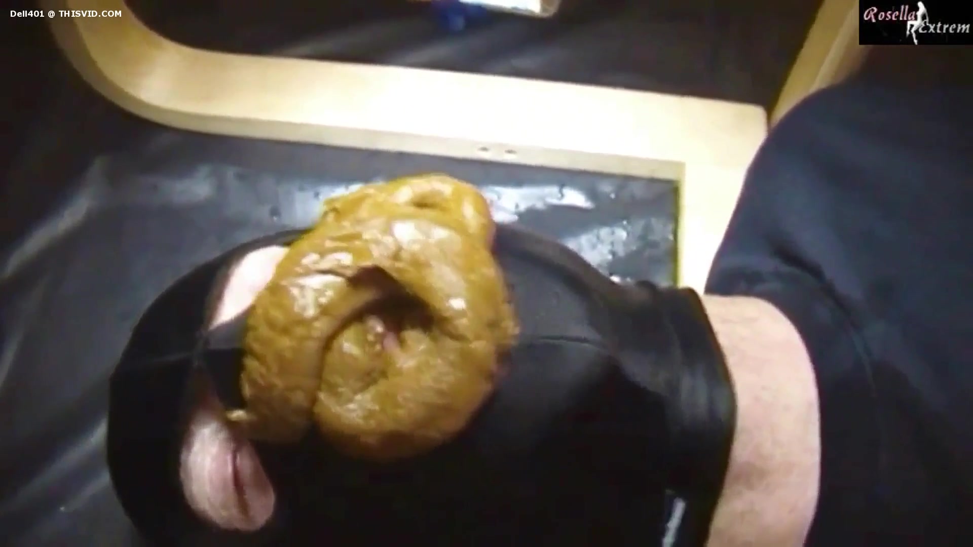 He's forced to lay naked on the bedroom floor and to eat fresh shit from hot mistress.