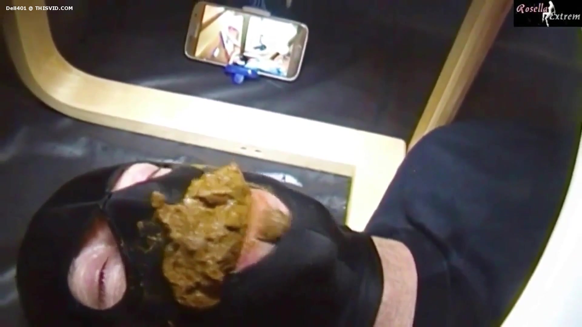 Masked slave forced to eat poop