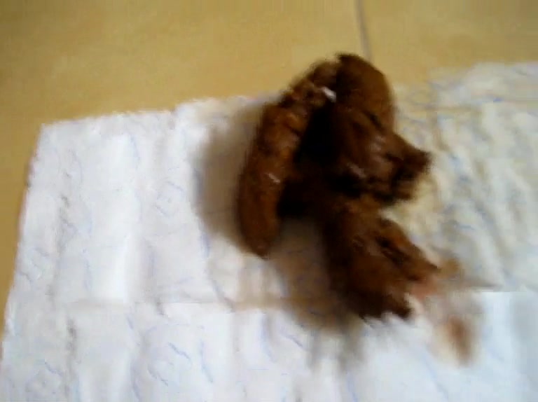 Chubby babe spreads her butt cheeks wide opened as she's pooping a lot on bathroom floor.