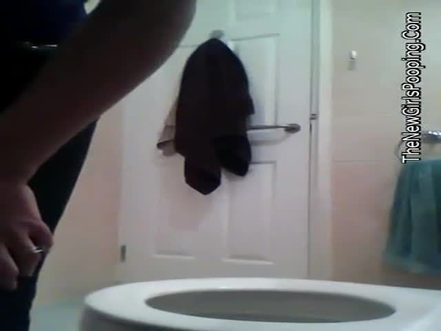 Using a hidden camera to spy on a brunette college babe that's pooping.