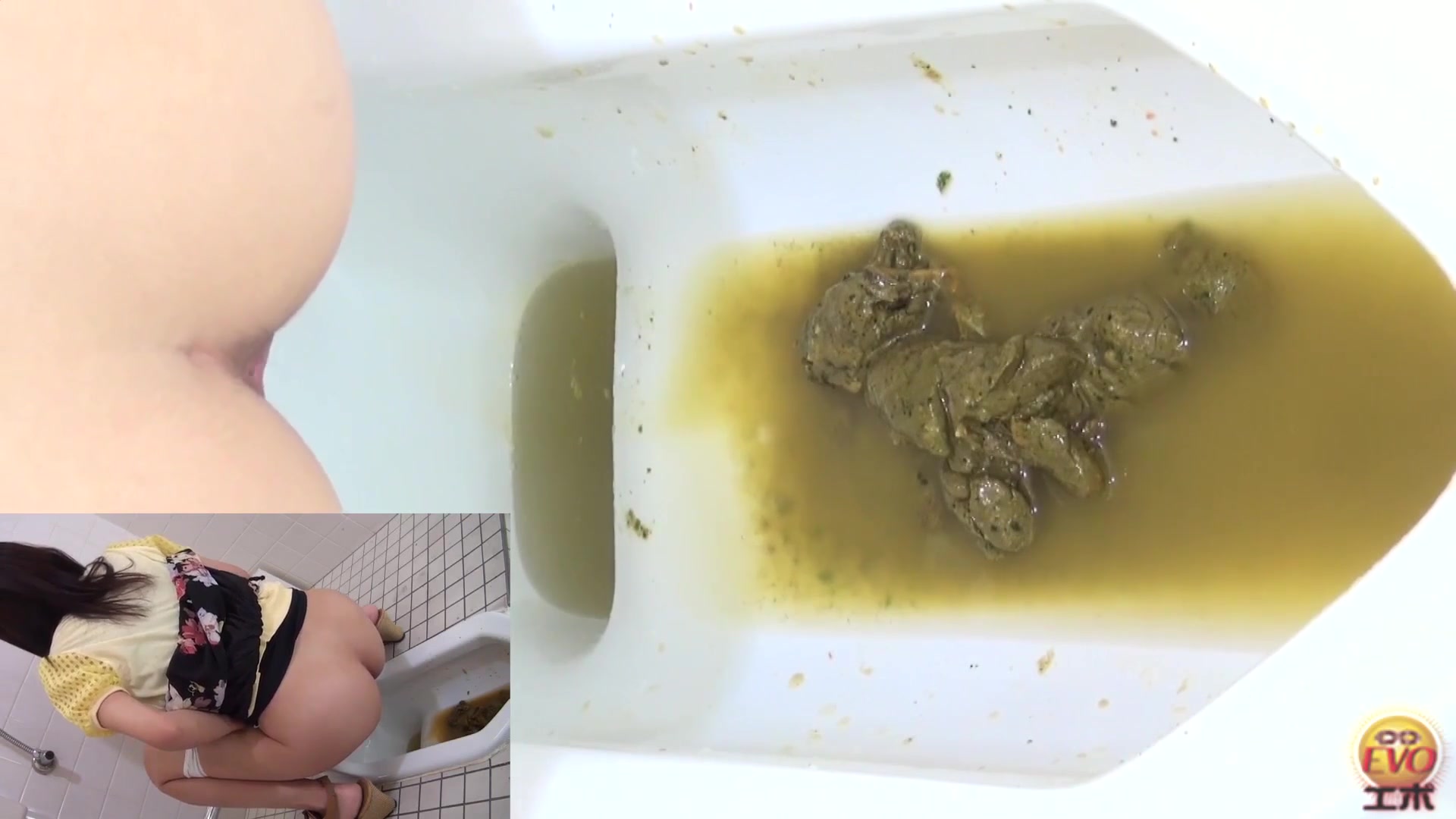 Japanese teen went to poop a lot in a public bathroom. She has diarheea and just can't stop shitting.