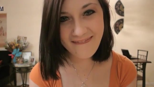 Brunette babe talking dirty to the camera as she's pooping on bedroom floor in same time.