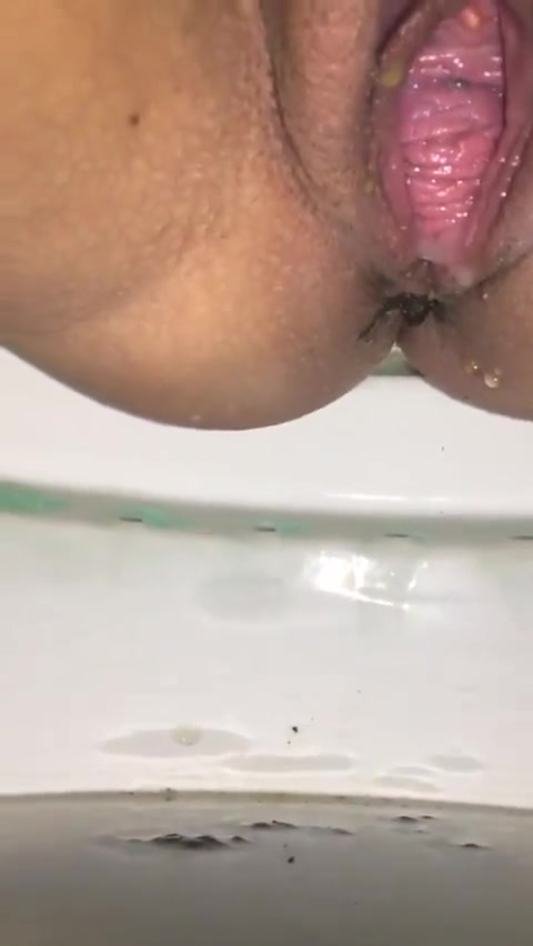 She records her creampied pussy in close up so she can easily poop a lot in toilet.