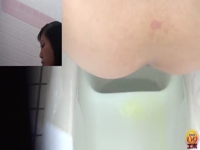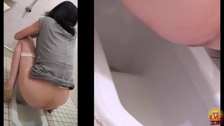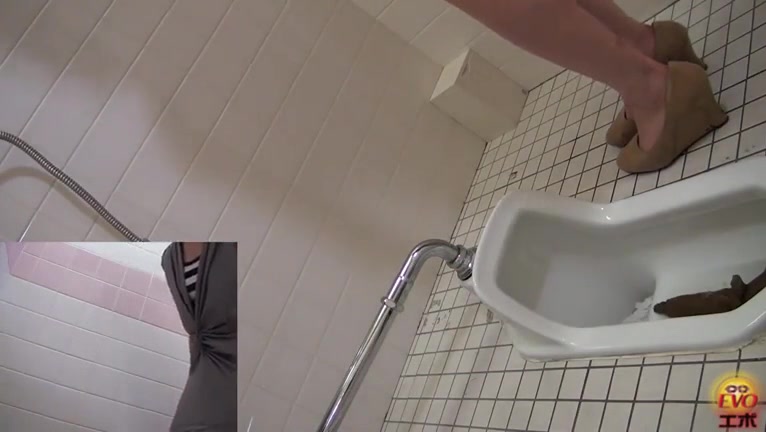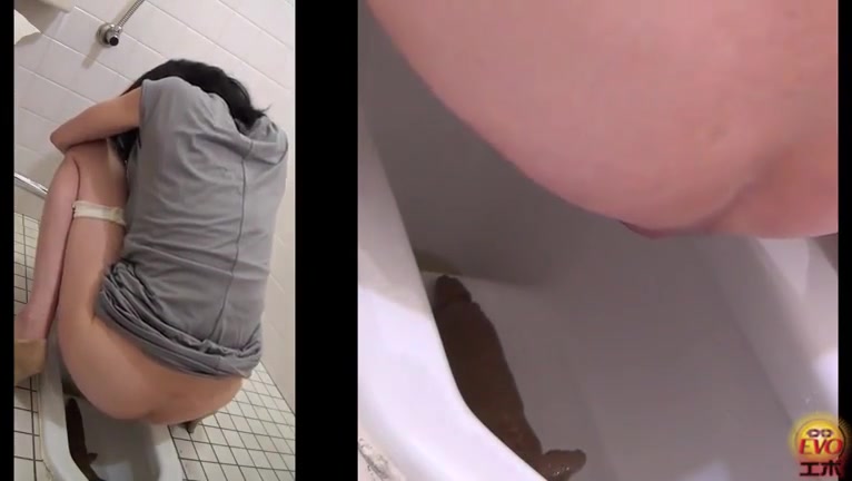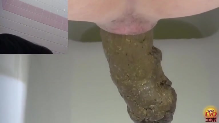 Petite girl pushing a monster turd from her tight ass. She dropped it in a public bathroom.