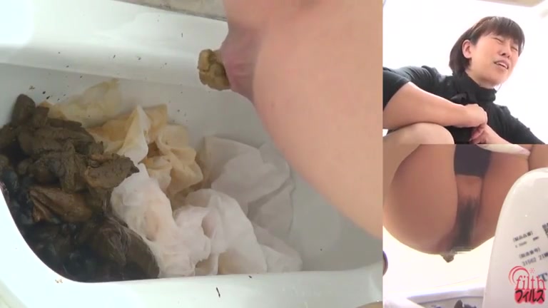 Hairy japanese dropped a huge pile of poop in a public bathroom. Using a clogged toilet.