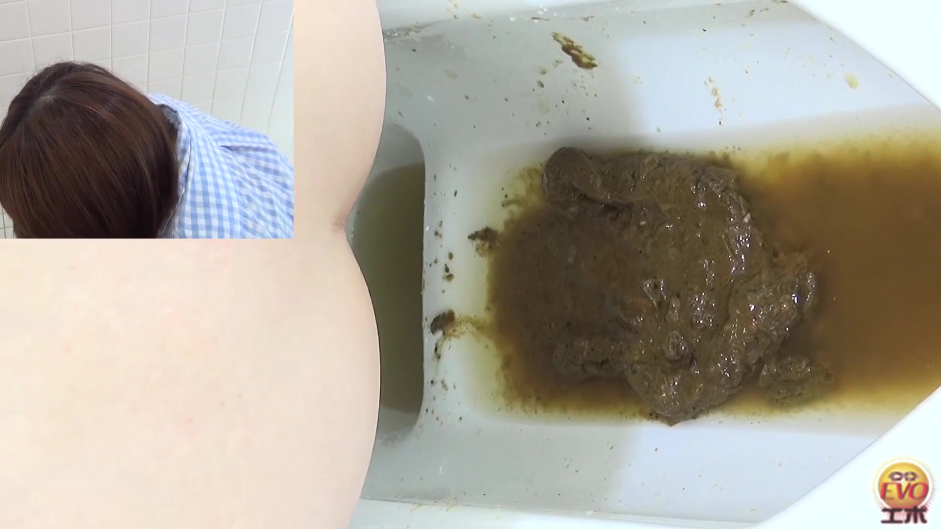 Brown haired japanese has diarrhea because she ate bad food at lunch. She wiped her dirty ass before leaving.