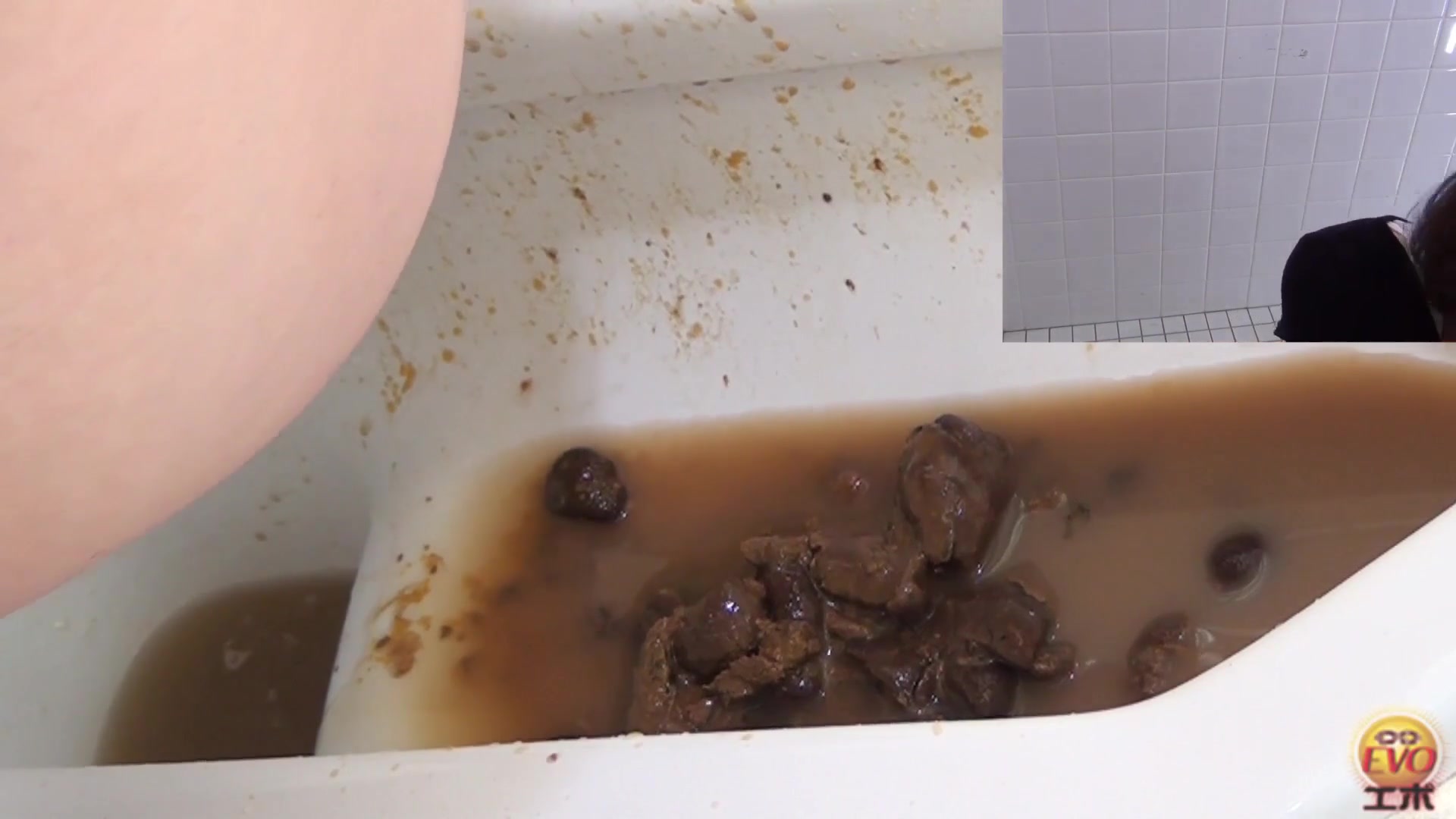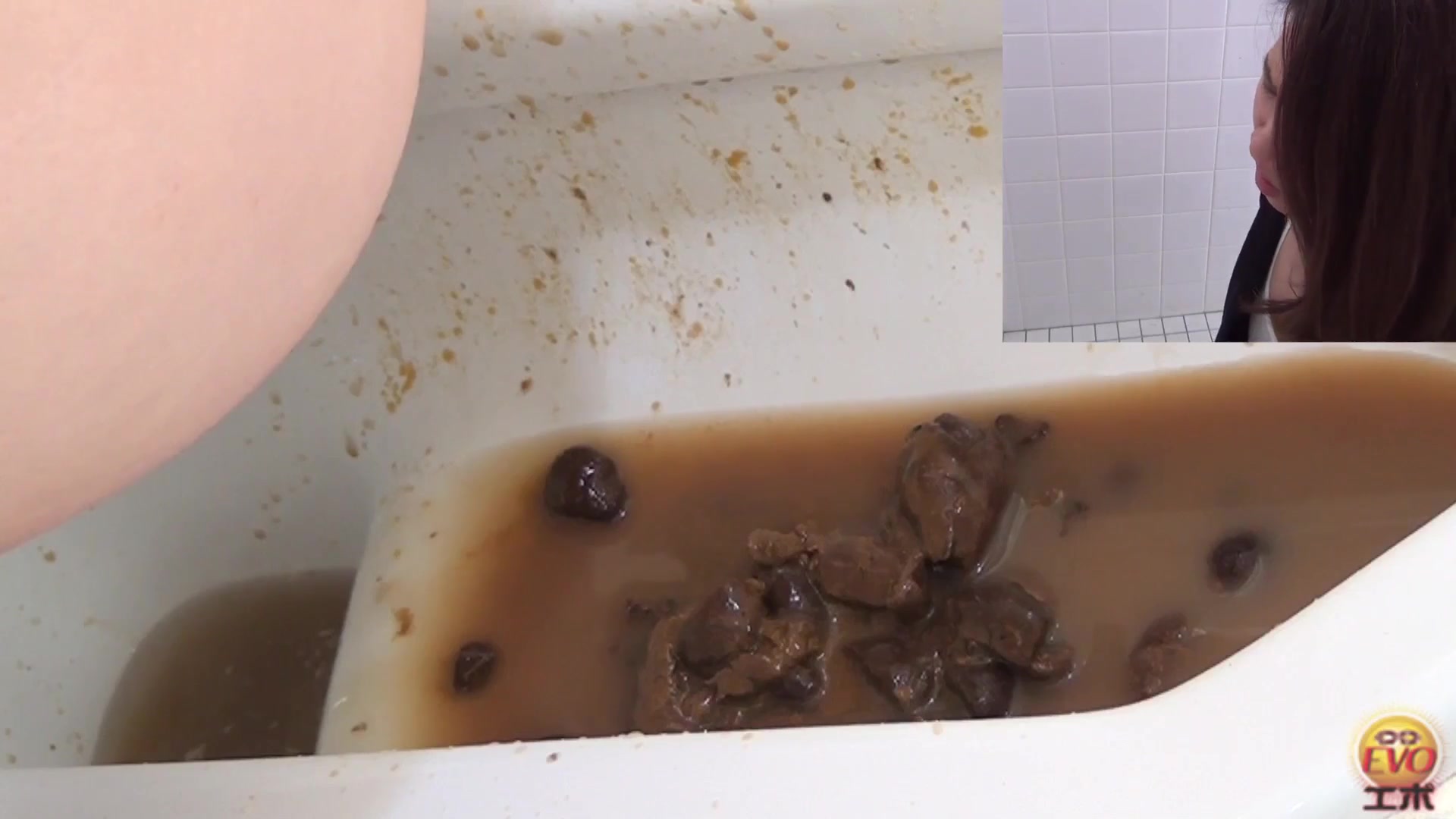 She almost did a real mess in her panties. She dropped big pieces of shit in public bathroom.