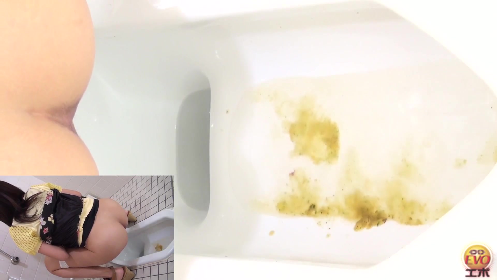 Japanese teen spreads her legs wide opened to easily poop in a public bathroom.