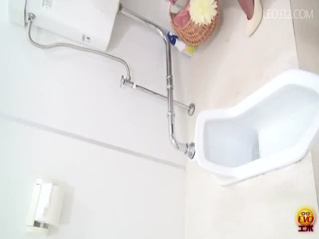 Brown haired japanese girl is using a public bathroom, so she can easily push a big turd from tight ass.