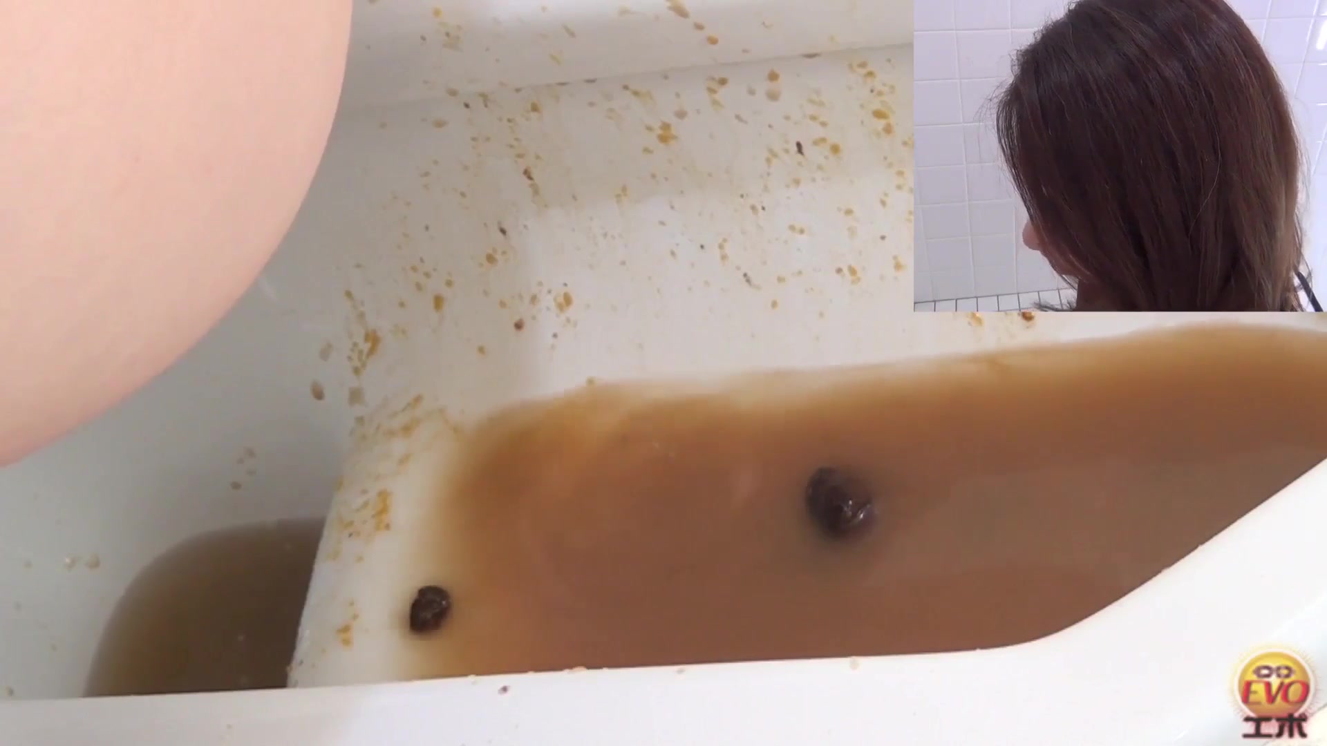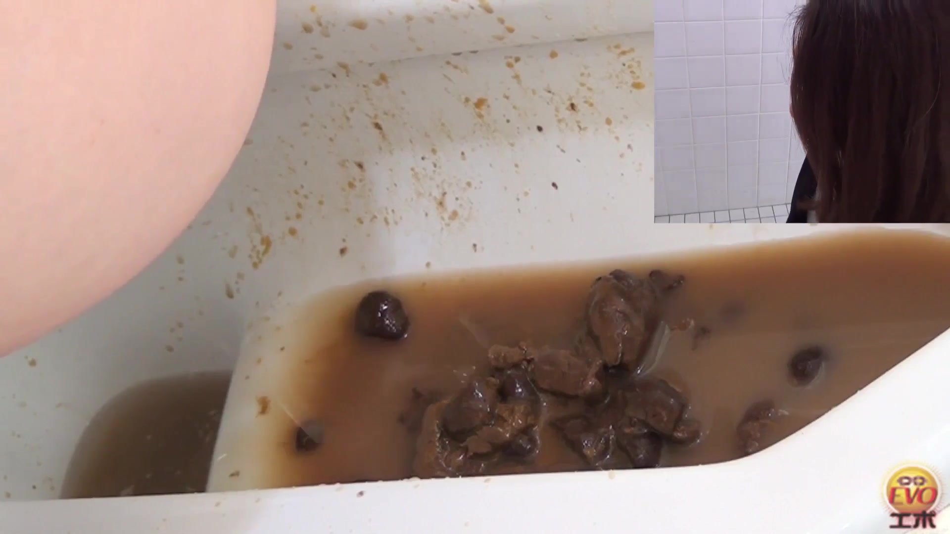 Dark haired babe gets caught pooping in public bathroom. She wiped her dirty ass before leaving.