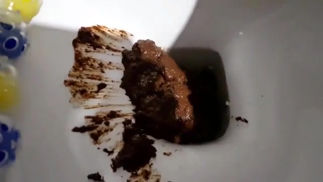 Teasing with her long legs and shaved pussy while pooping a lot.