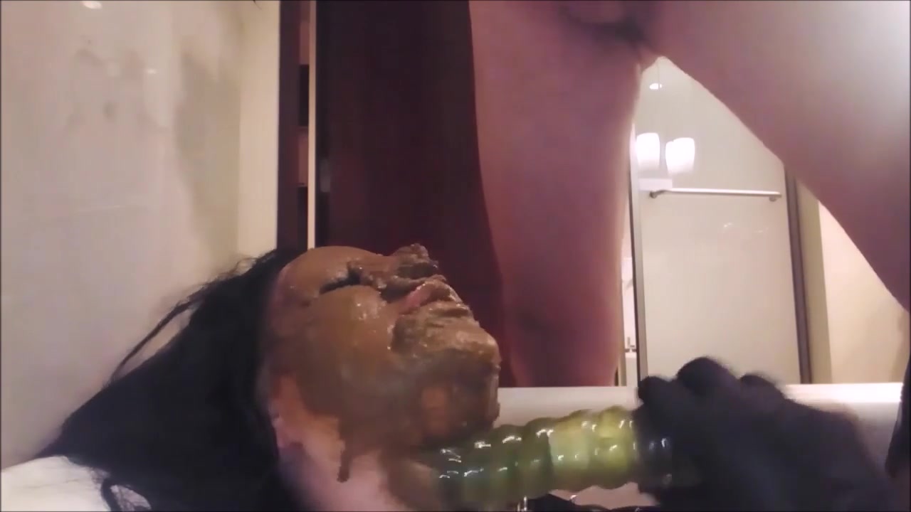 He decides to smear a lot of shit on girlfriend's face before face fucking her hard.