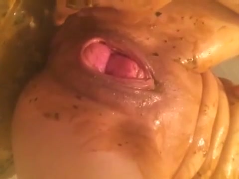 Chubby babe masturbates with shit