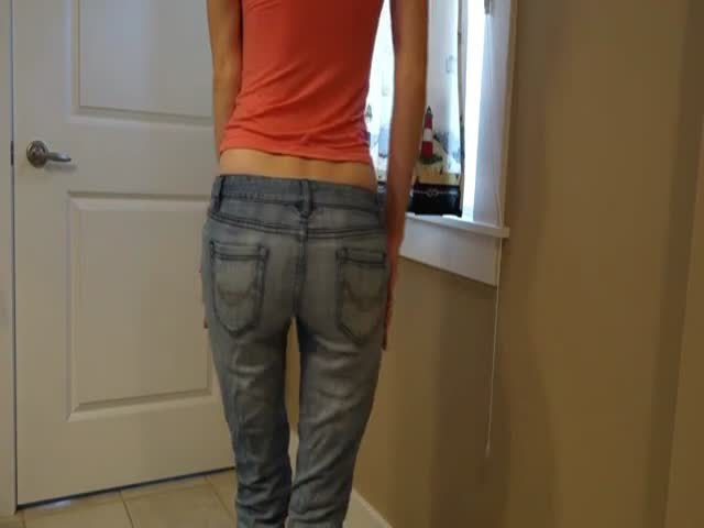 Dark haired babe shits a lot in her tight blue jeans. She smears that shit on her ass.