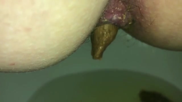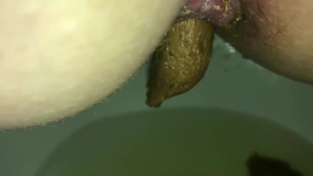 Sexy babe is very constipated. She struggles to push a big brown turd out.