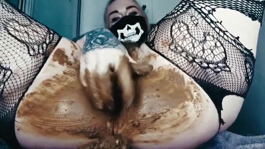 Fingering her pussy after smearing shit