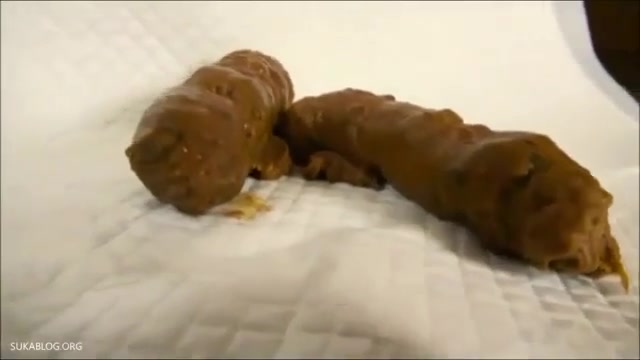 Dark haired japanese beauty is teasing us with her half naked body. She's pushing a long turd from a big ass.