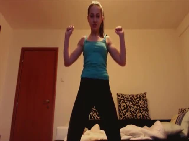 College girl dancing and pooping