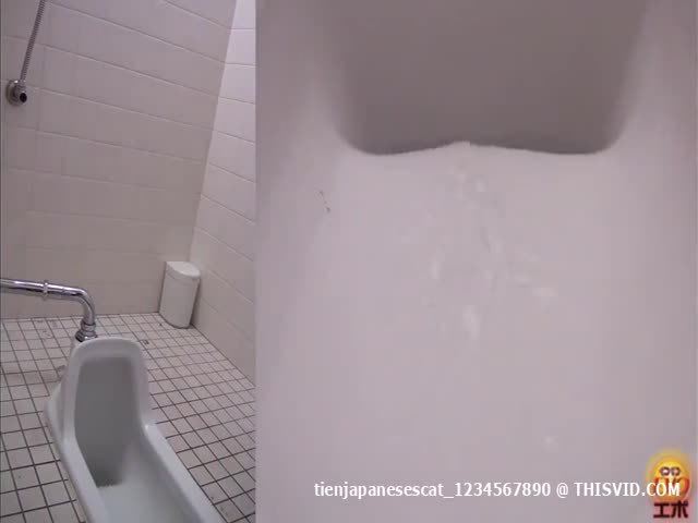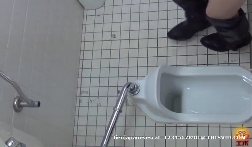 Japanese schoolgirl caught shitting in a public bathroom. She's pushing a brown turd.