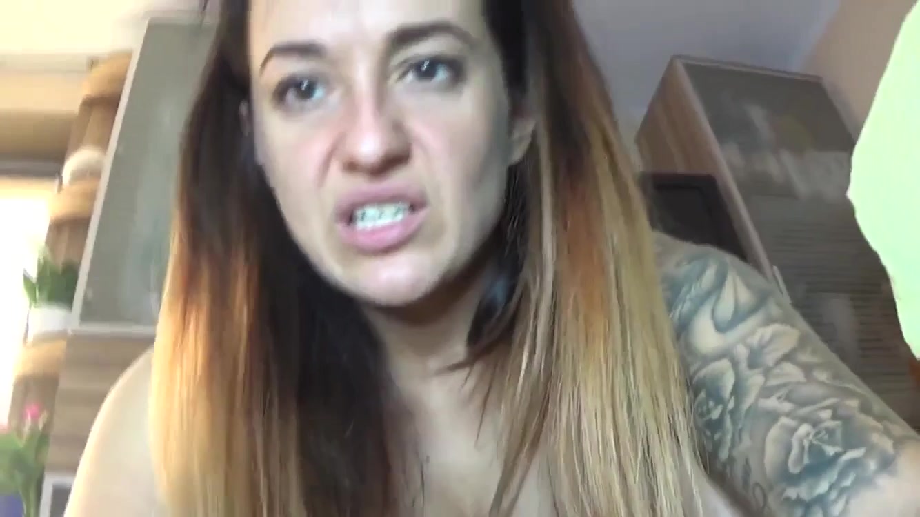 Italian babe is teasing us with her half naked body. Tattooed body and shaved pussy. She has serious diarrhea.