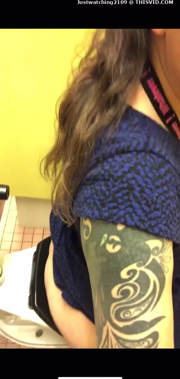 Brown haired tattooed teen is pooping and peeing a lot. Massive loud farts from her big ass.