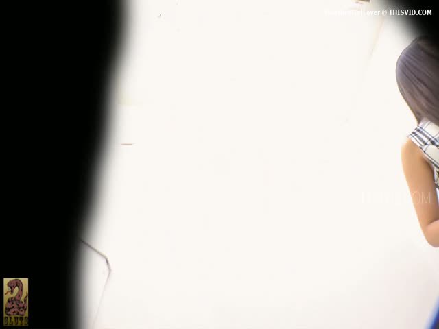 Dark haired teen sits on her knees and she shits a lot in a public bathroom.