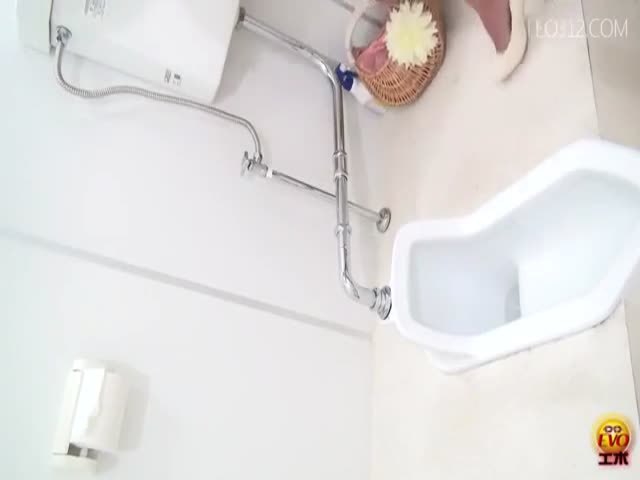 Brown haired japanese model is pooping in a public bathroom. A hidden camera is installed there.
