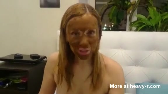 Blonde milf smears a lot of shit on her pretty face.