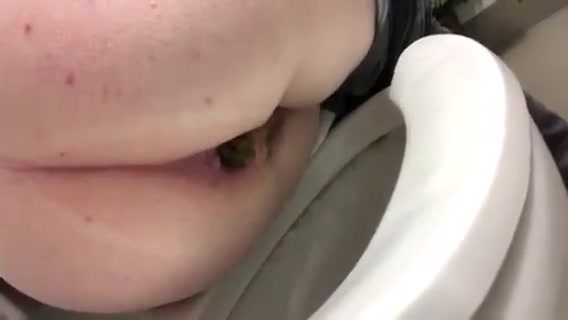Using a hidden camera to spy on a chubby babe that's pooping a lot over toilet.