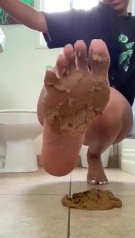 Sweet ebony steps in a pile of poop because she's into scat.