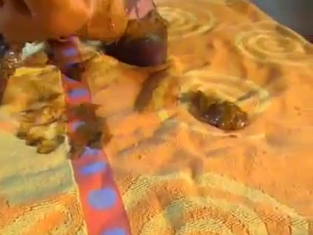 Shaved teen can't stop shitting a lot in a pair of black high heels.